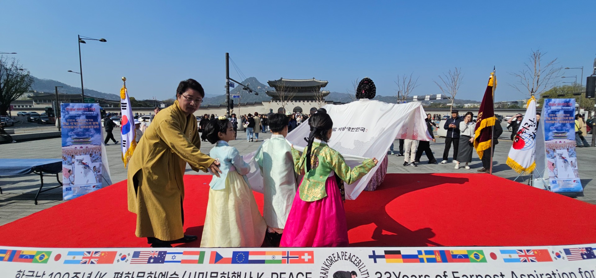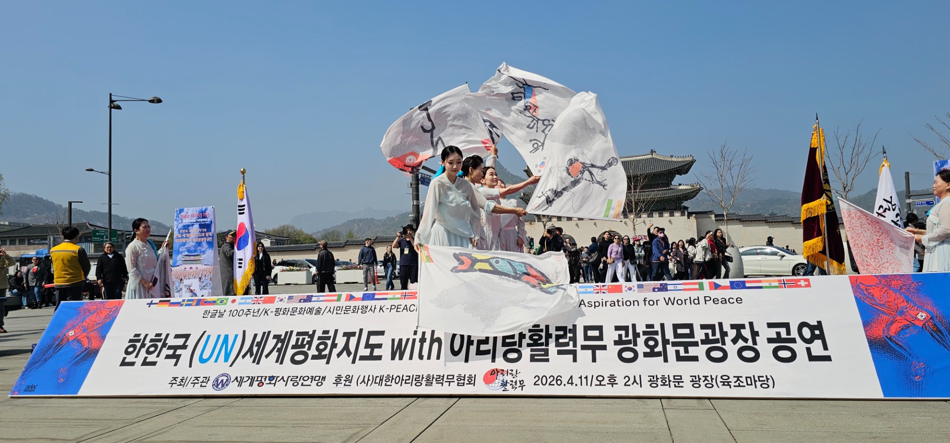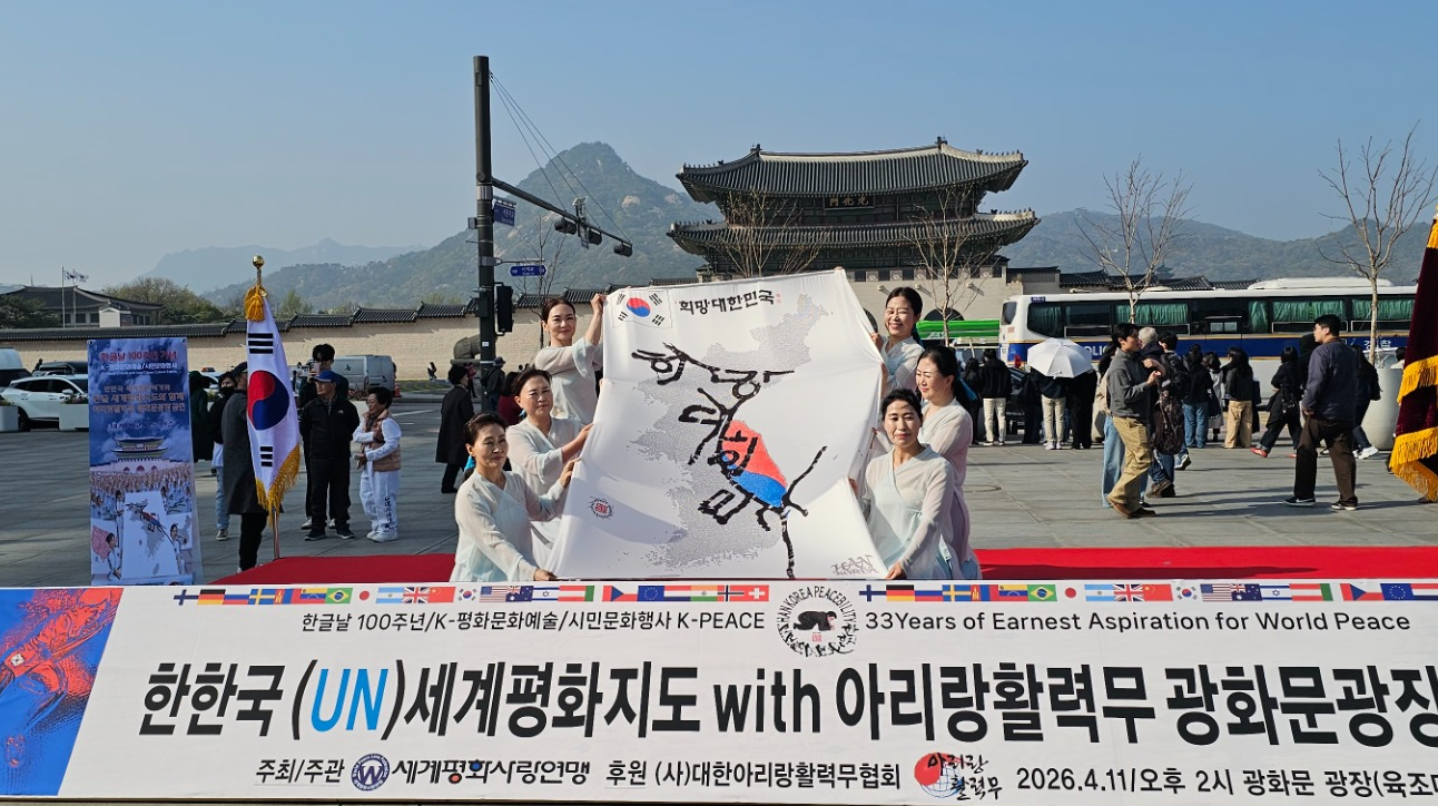 지난 11일 오후 2시, 서울 광화문 광장. 한글날 100주년을 맞아 펼쳐진 ‘K-평화문화예술·시민문화행사’가 시민들이 참여한 가운데 성황리에 개최됐다. ‘한한국 세계평화작가의 한글 세계평화지도와 함께하는 아리랑활력무 광화문 공연’이 이날 행사는 한글의 아름다움을 세계 평화 메시지와 결합한 독창적인 문화예술 축제로 자리매김했다.