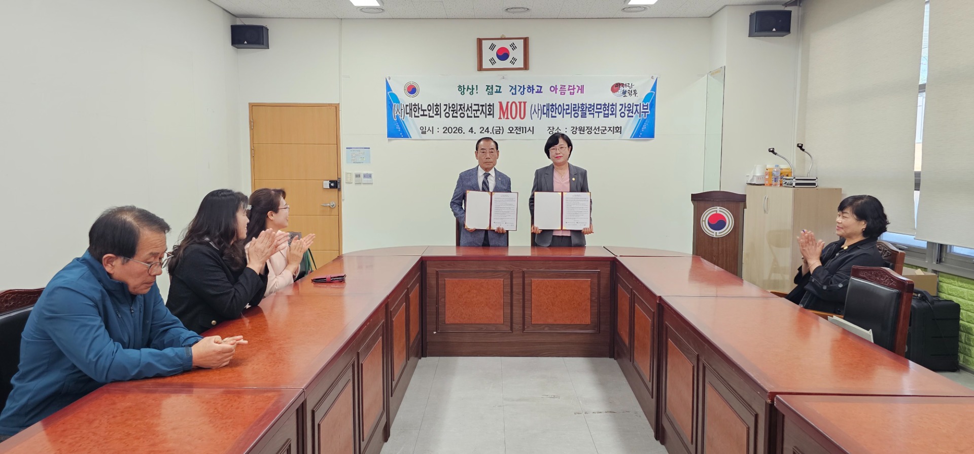 정선지역 어르신들의 건강한 노후와 삶의 질 향상을 위해 (사)대한노인회 강원 정선군지회와 (사)대한아리랑활력무협회 강원지부가 손을 맞잡았다.