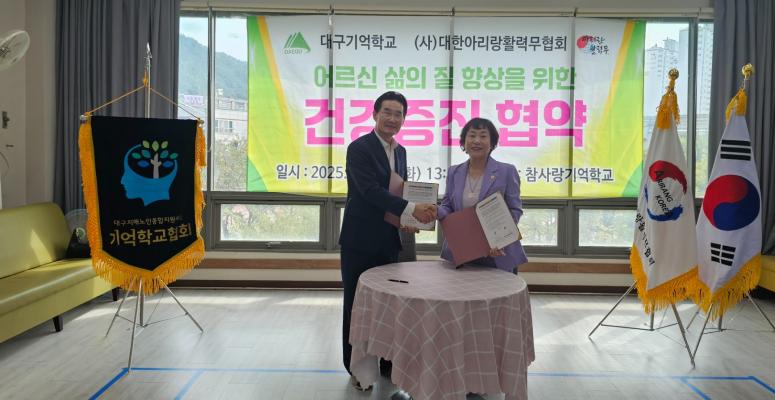 9월 30일 대구기억학교와 (사)대한아리랑활력무협회는 어르신의 삶의 질 향상을 위한 건강증진 프로그램 운영을 위한 업무협약을 체결했다. 이번 협약은 고령화 시대에 접어든 한국 사회에서 노년층의 건강한 삶을 지원하기 위한 양 기관의 공동 노력을 다짐하는...