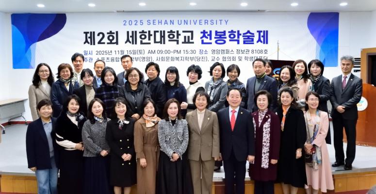 지난 15일 세한대학교 영암캠퍼스 정보관 8108호에서 ‘제2회 천봉학술제’가 개최됐다. 이번 학술제는 (사)대한아리랑활력무협회의 식전공연과 함께 다채로운 학술 발표가 이어지는 가운데, 지역과 학교가 함께하는 소통과 발전의 장으로 조명받았다.행사는 (...