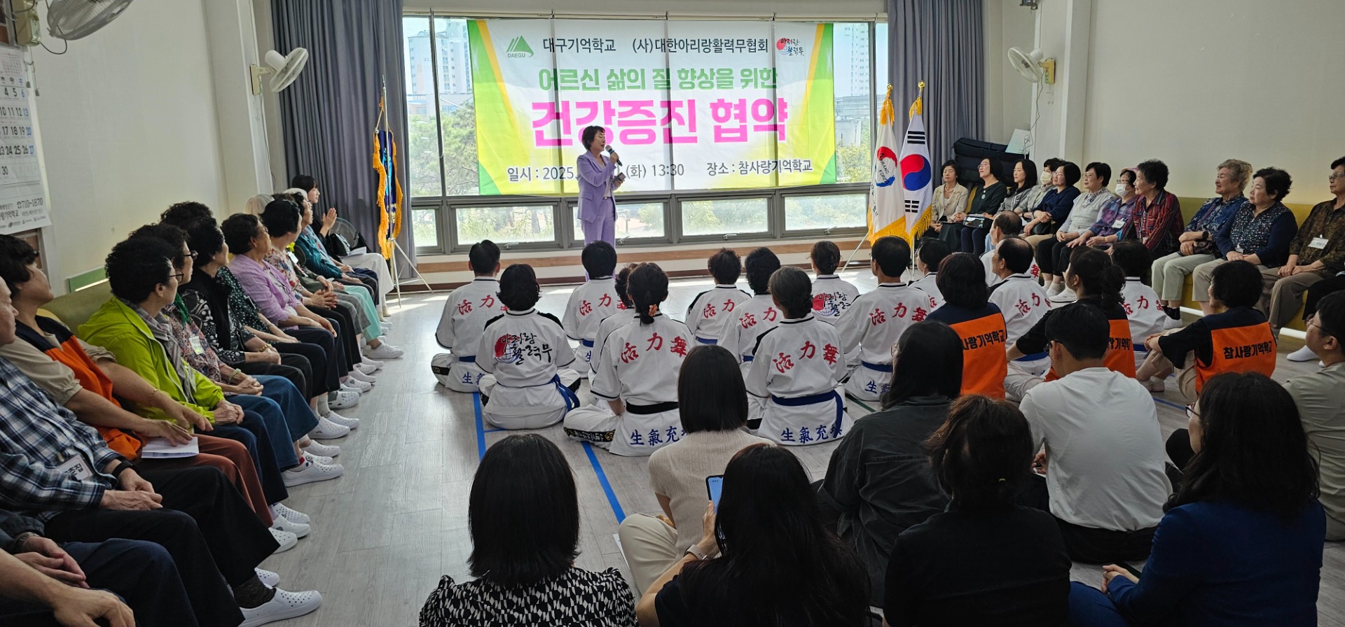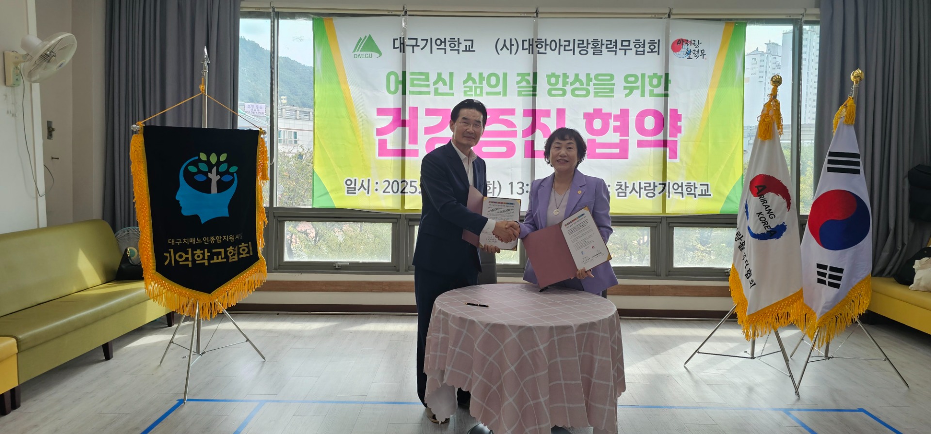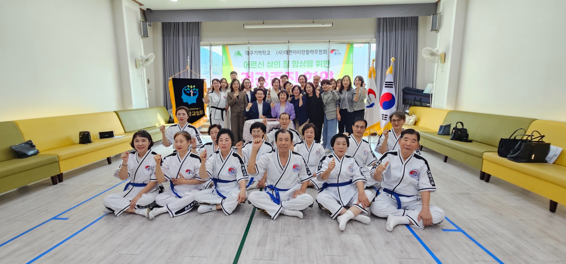 9월 30일 대구기억학교와 (사)대한아리랑활력무협회는 어르신의 삶의 질 향상을 위한 건강증진 프로그램 운영을 위한 업무협약을 체결했다. 이번 협약은 고령화 시대에 접어든 한국 사회에서 노년층의 건강한 삶을 지원하기 위한 양 기관의 공동 노력을 다짐하는 자리였다.