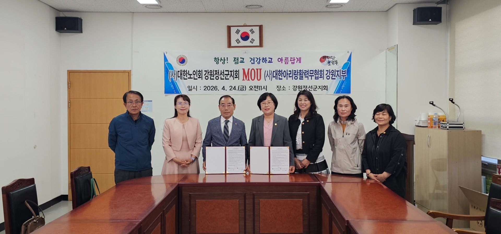 정선지역 어르신들의 건강한 노후와 삶의 질 향상을 위해 (사)대한노인회 강원 정선군지회와 (사)대한아리랑활력무협회 강원지부가 손을 맞잡았다.